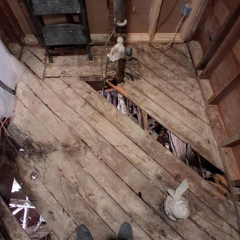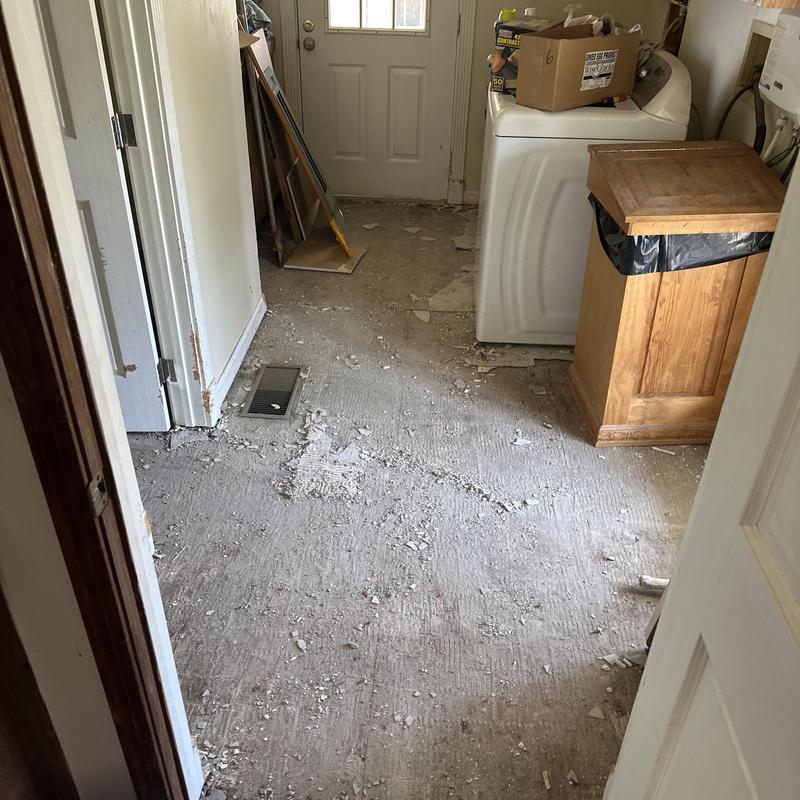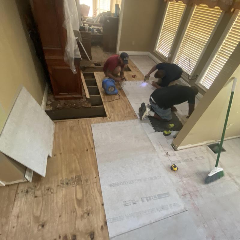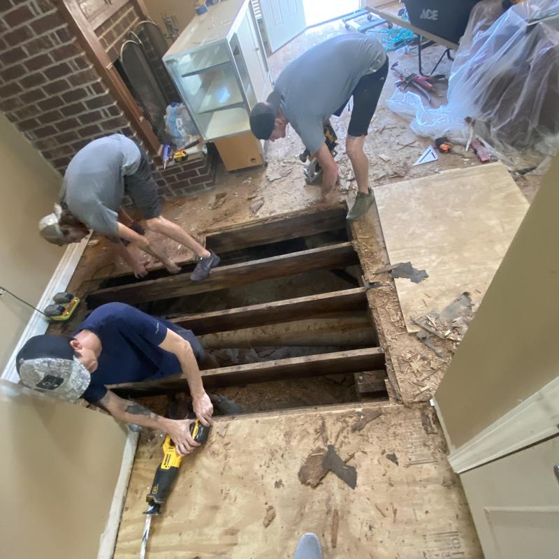 BORN AGAIN HOME REMODELING AND ROOFING LLC removed ceramic flooring in Brandon, Mississippi, to inspect the subfloor. The team found damage in the substructure and evaluated the area to define the next repair steps. This process ensured the structure's condition was properly assessed before further work began.