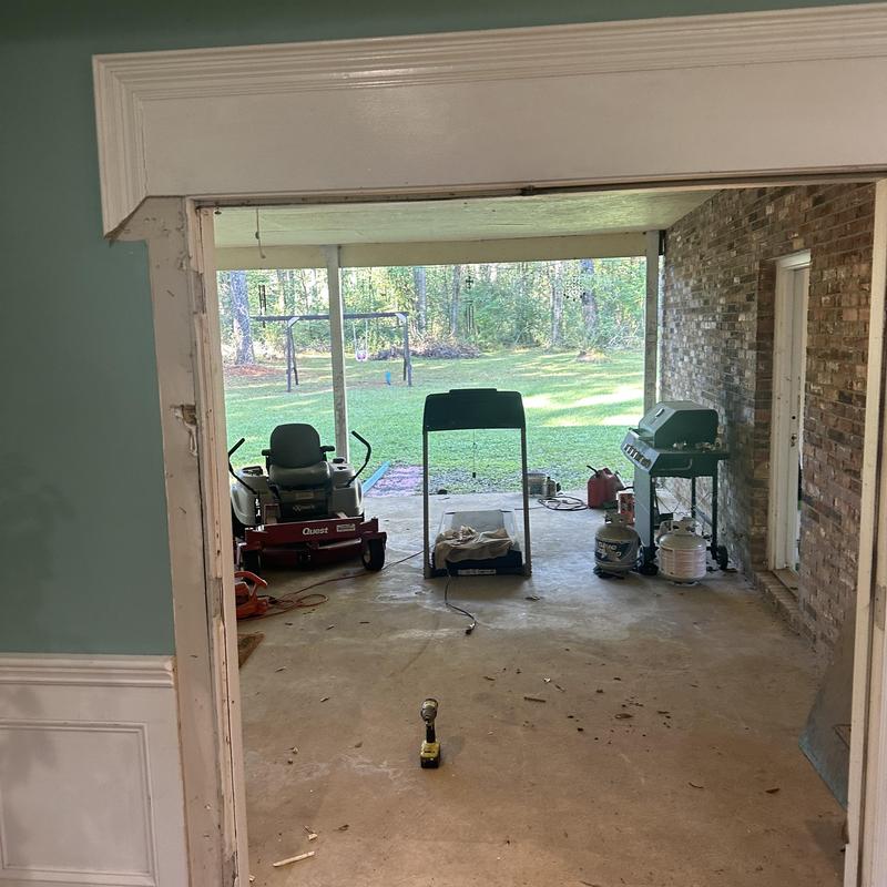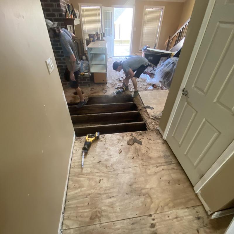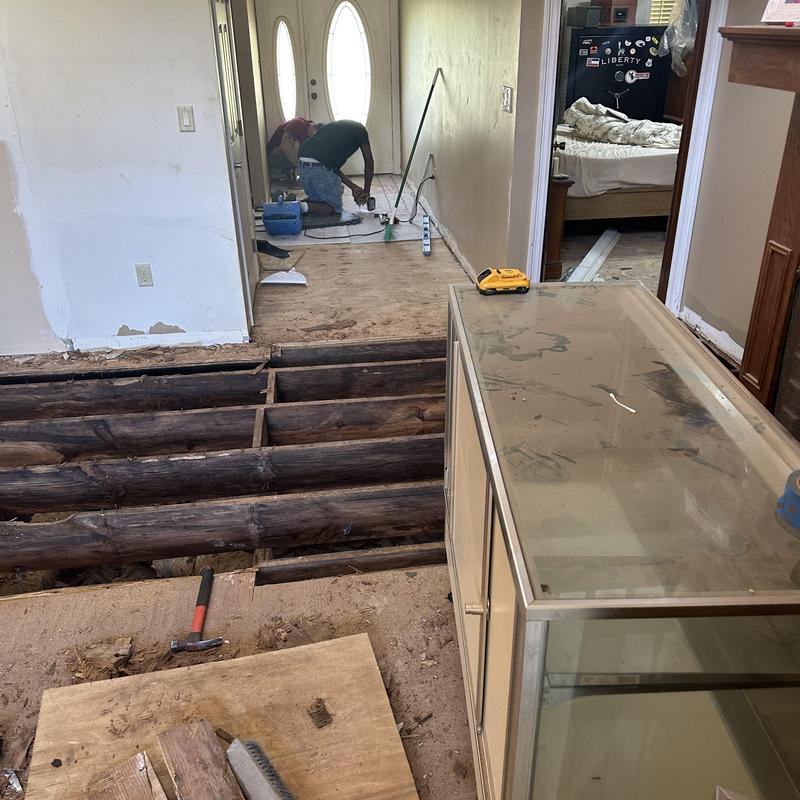 Contractors removed all rotten flooring, joists, and decking in Magee, Mississippi. The service involved identifying damaged structural components and clearing them out to prepare the area for safe and stable reconstruction.