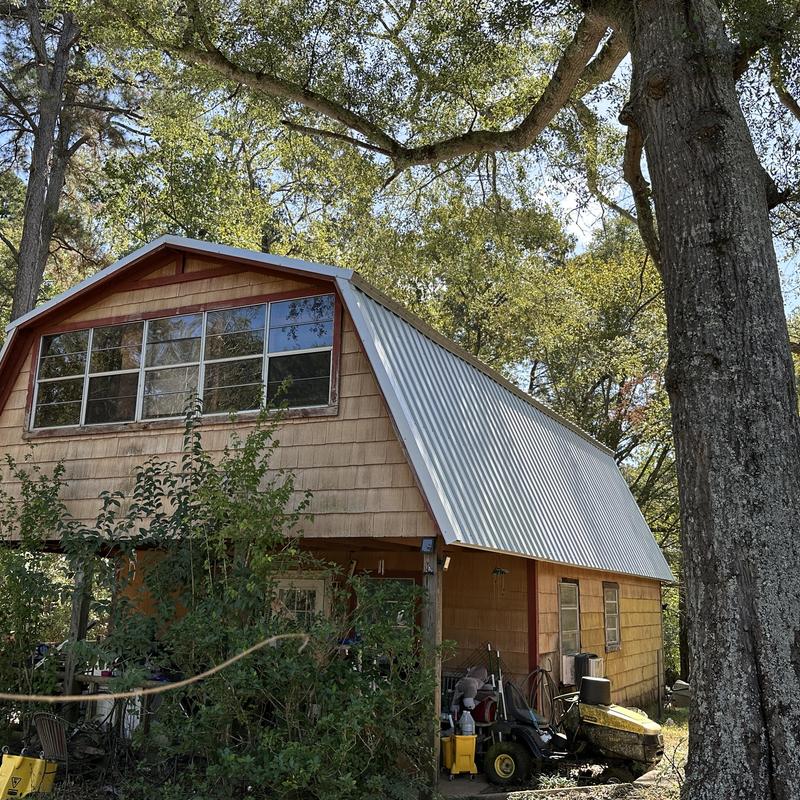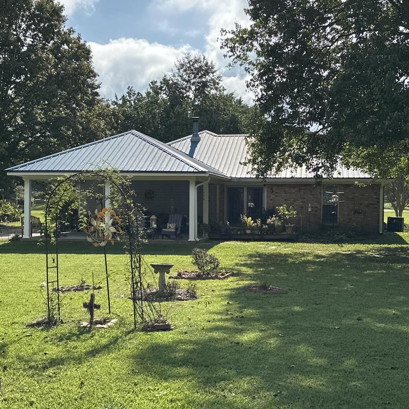 BORN AGAIN HOME REMODELING AND ROOFING LLC removed old metal roof panels and installed a new 26-gauge roof system in Jackson, Mississippi. The team added new gable trim, eve trim, and a ridge cap, then cleared all debris and swept the yard with a magnetic roller.