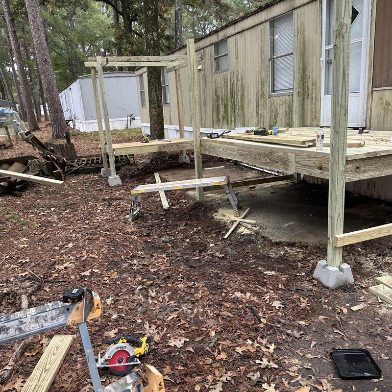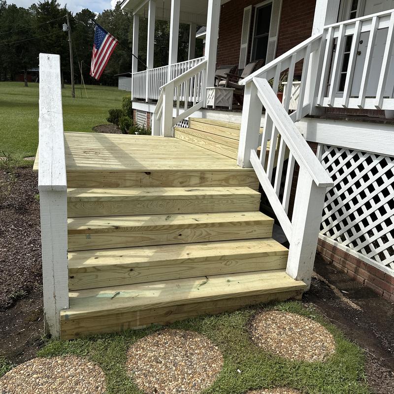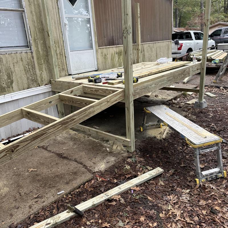 Contractors removed an old deck and built a new one using treated wood in Clinton, Mississippi. The project involved full demolition and reconstruction to ensure durability and improved function.