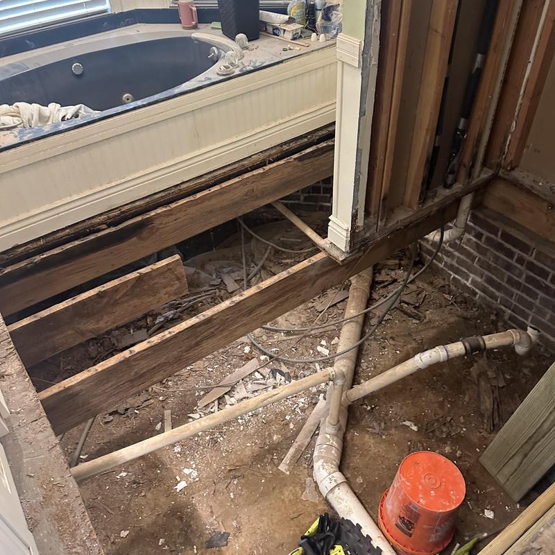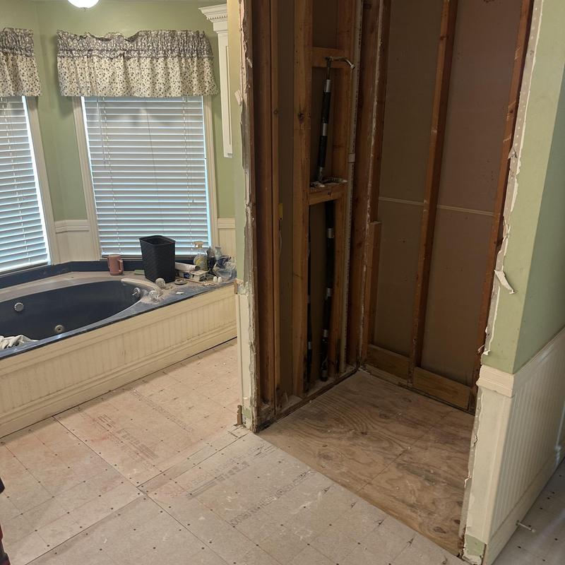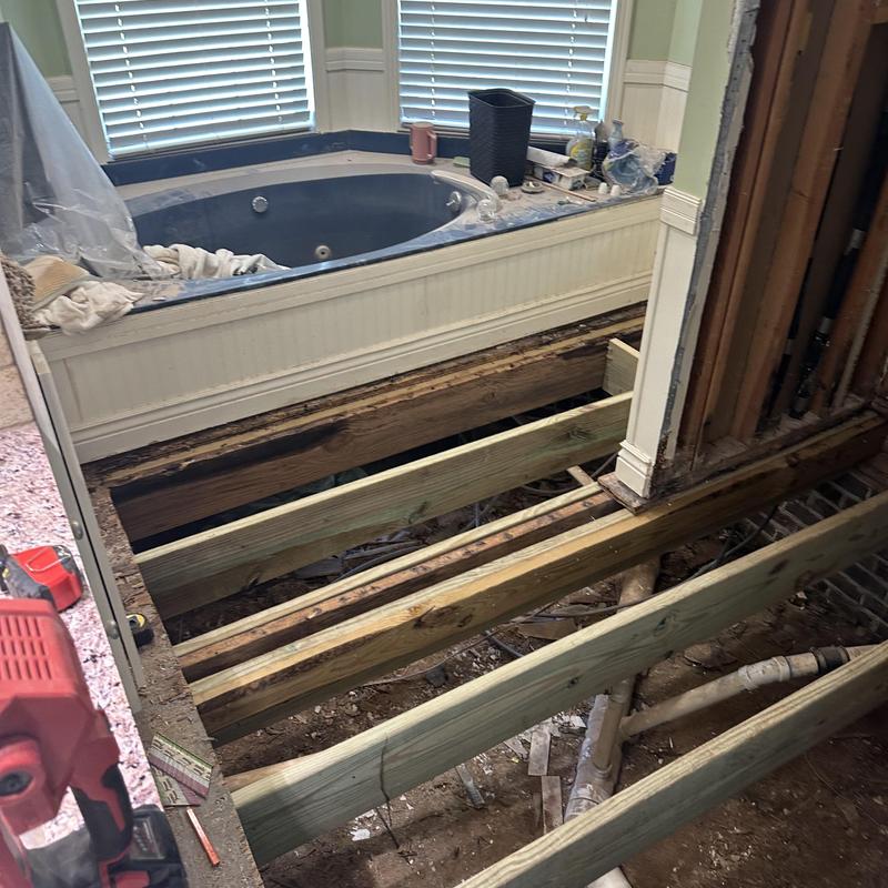 BORN AGAIN HOME REMODELING AND ROOFING LLC removed a damaged subfloor and dismantled the master shower in Brandon, Mississippi. This work prepared the area for new flooring and shower installation, ensuring a stable and clean starting point for future renovations.