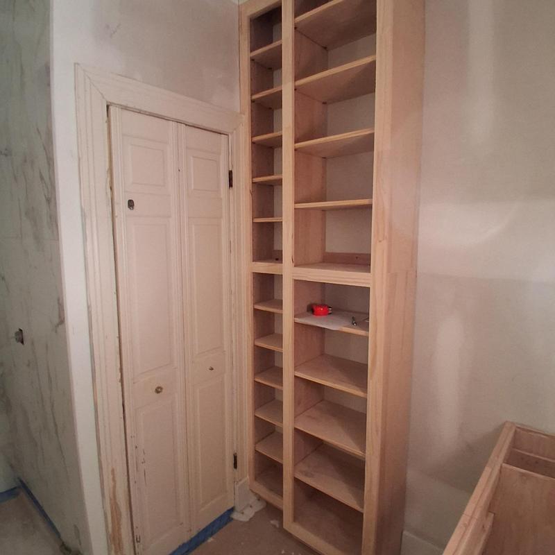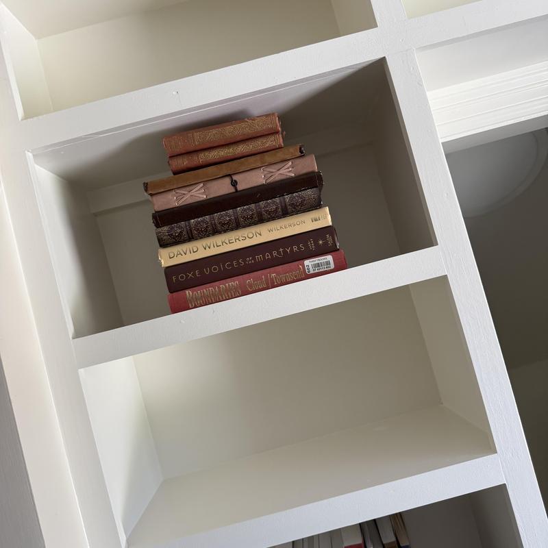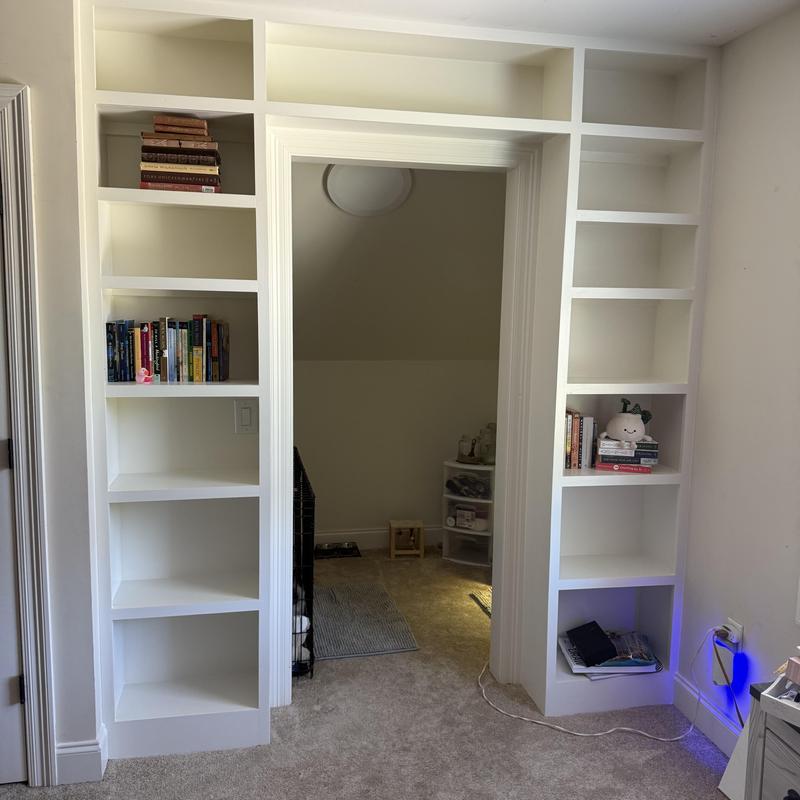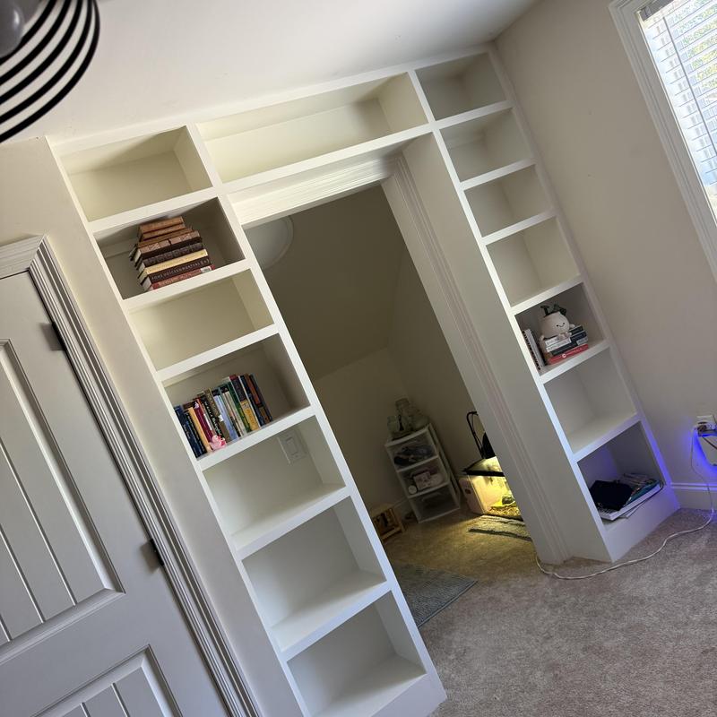 Born Again Home Remodeling and Roofing LLC built a custom bookcase and completed prep and paint work in Jackson, Mississippi. The project involved constructing the unit and applying a clean, finished coat of paint for a cohesive look.