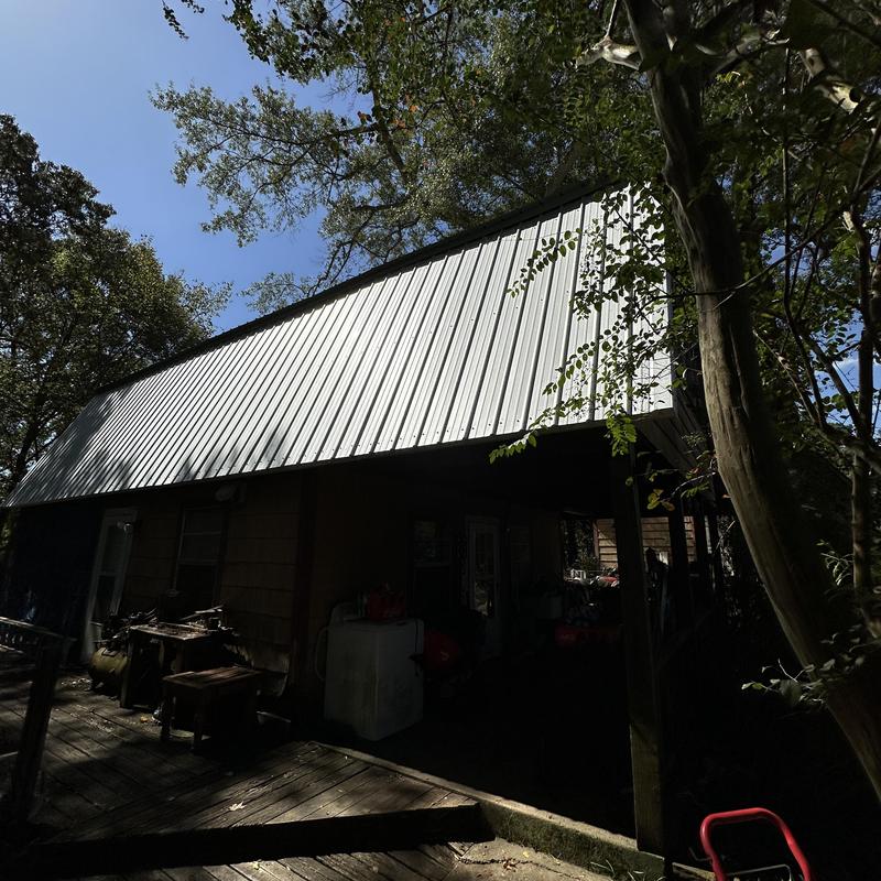 BORN AGAIN HOME REMODELING AND ROOFING LLC completed a metal roof replacement in Clinton, Mississippi. The project included removing old panels, replacing insulation, installing 26-gauge commercial R panels, gable trim, ridge caps, and steam tape, using a Zack screw fastener system. All debris was removed, and a magnet roll cleared the property.