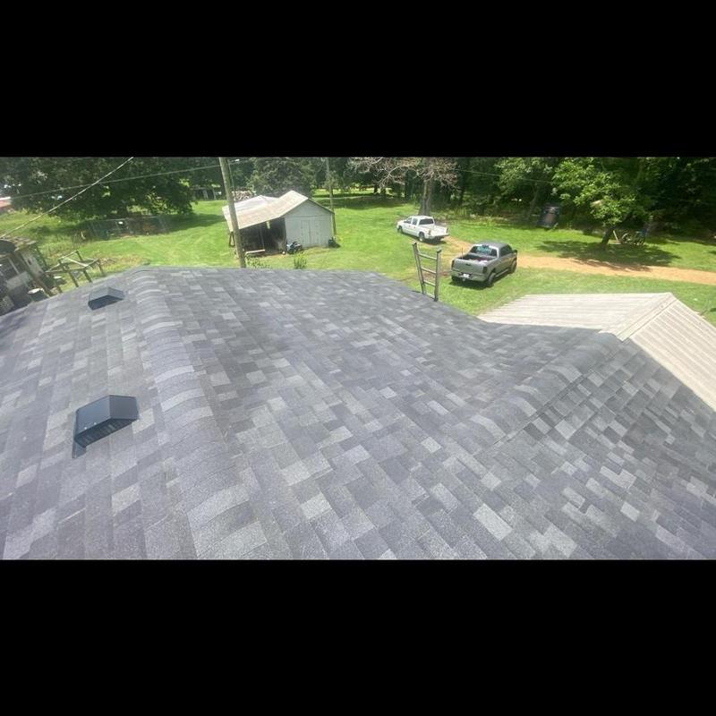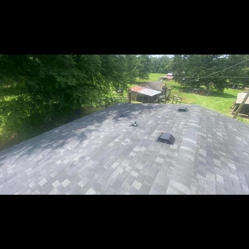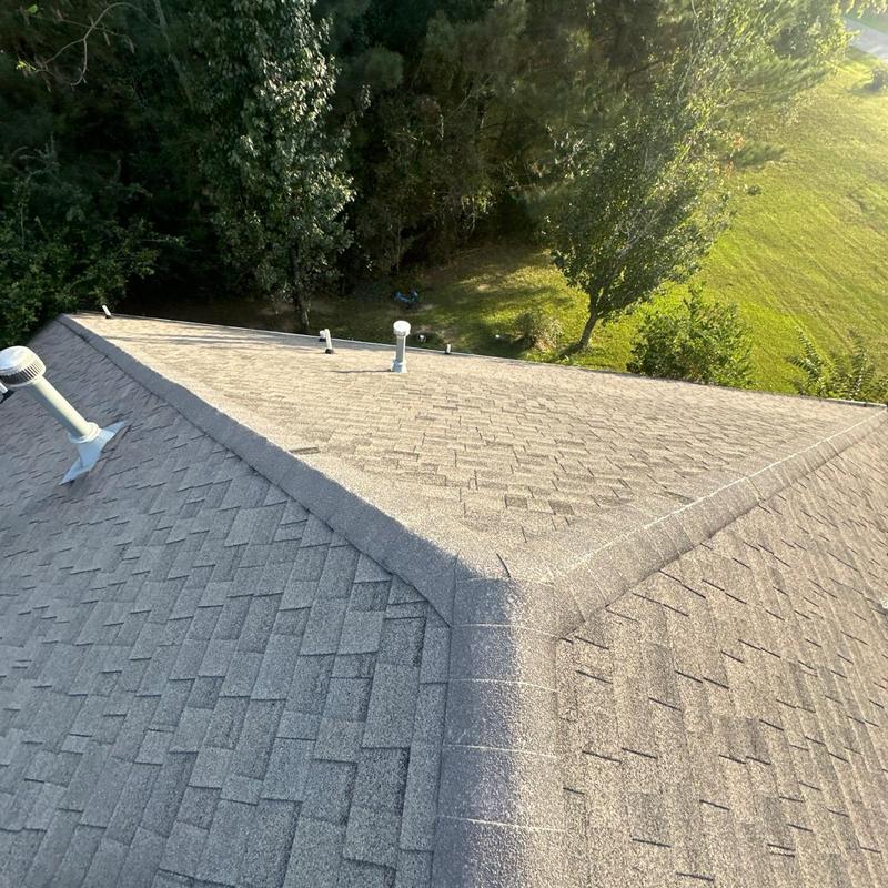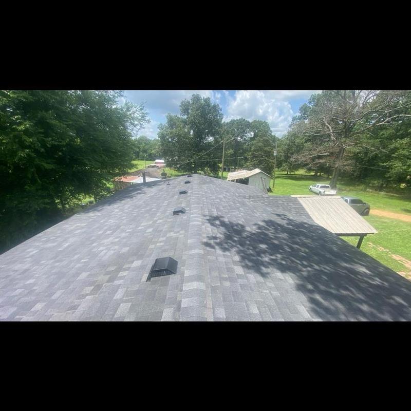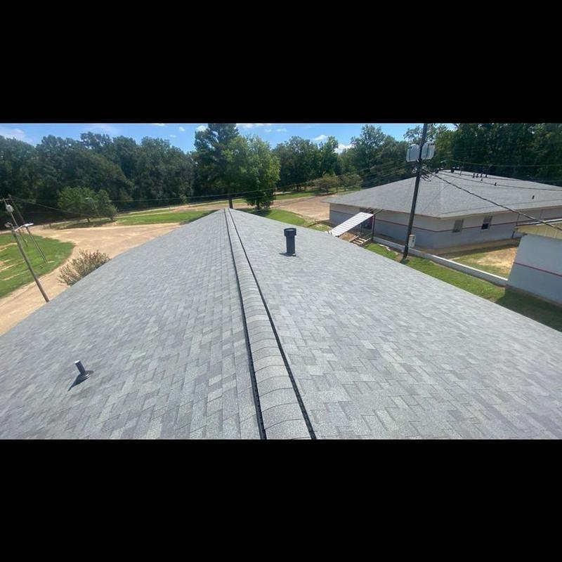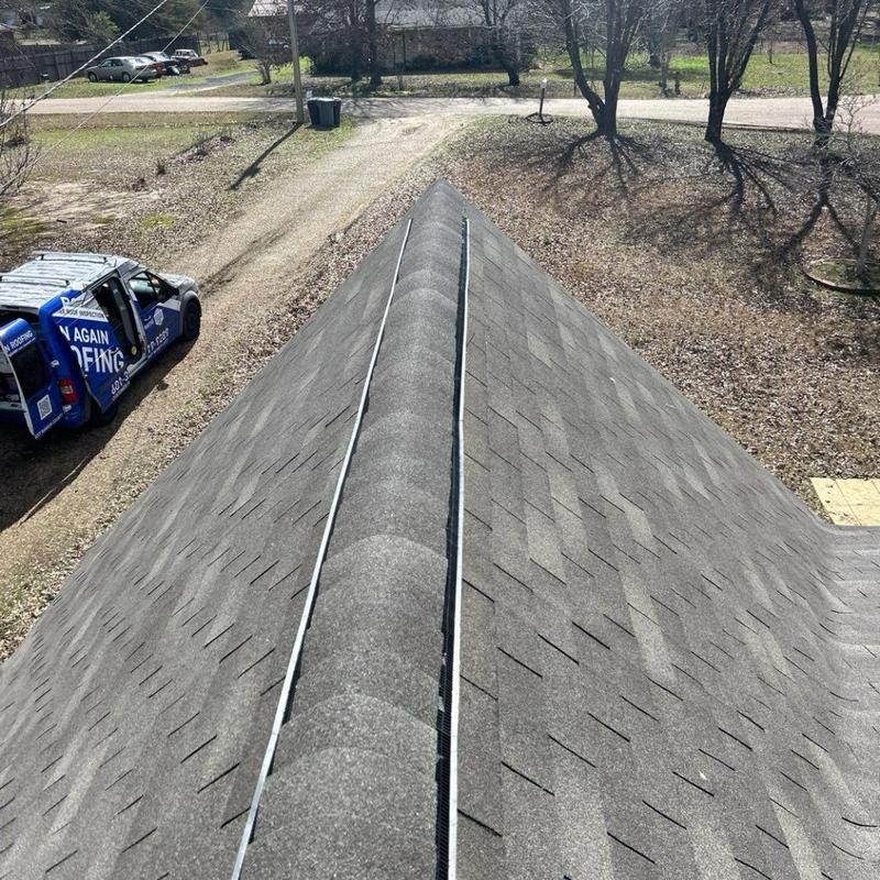 BORN AGAIN HOME REMODELING AND ROOFING LLC completed a new roof installation in Mendenhall, Mississippi. The team applied synthetic felt, installed ice and water shields around roof penetrations, placed GAF HDZ architectural shingles, fitted boots on all pipes, and finished with a cover ridge vent for ventilation.