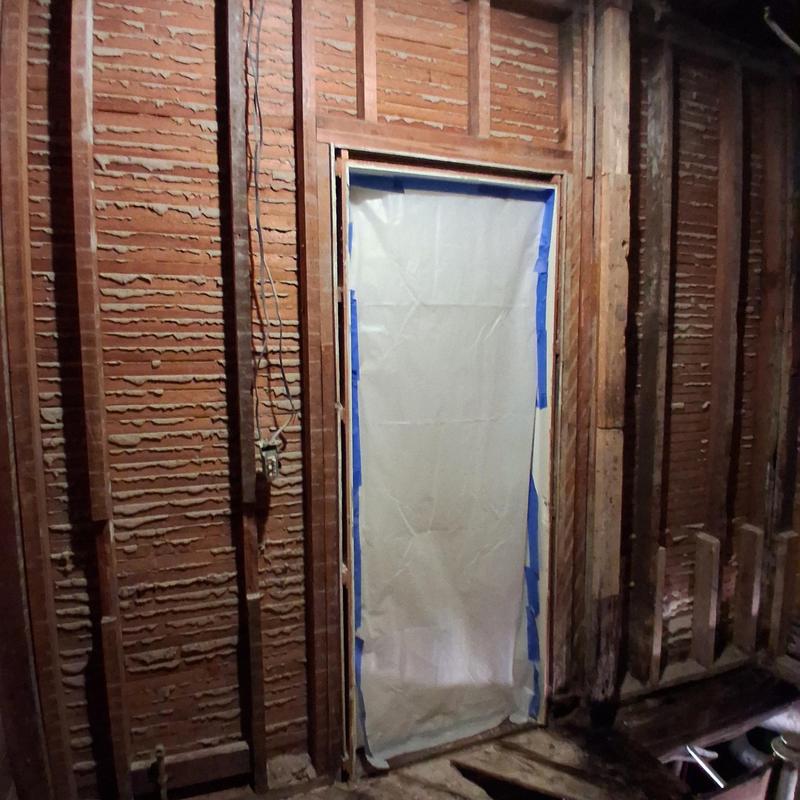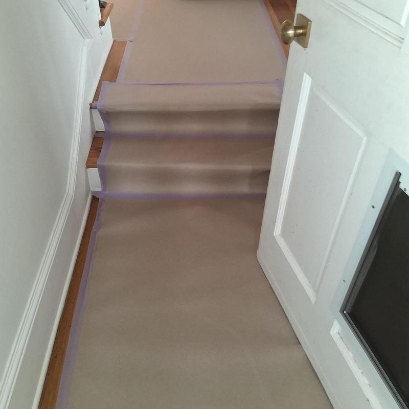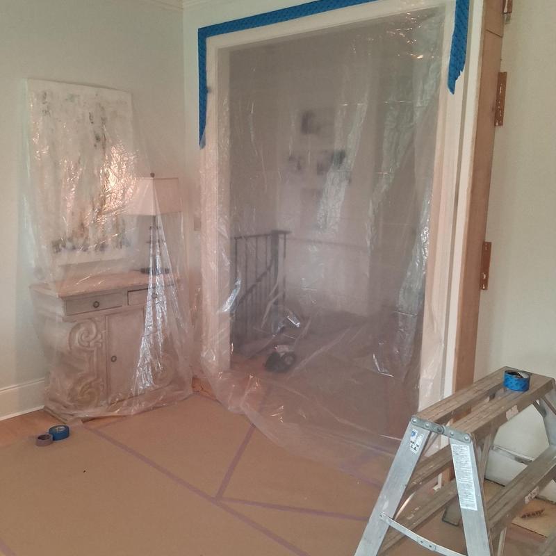 BORN AGAIN HOME REMODELING AND ROOFING LLC began a cabinet remodel in Jackson, Mississippi. The team protected floors and stairs and installed dust control to maintain a clean and safe workspace.
