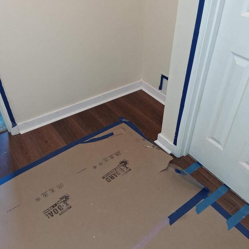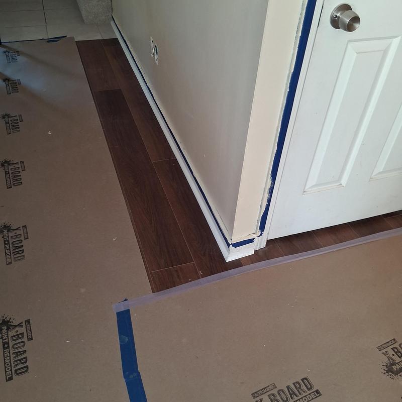 Contractors in Clinton, Mississippi prepared the subfloor to ensure a smooth, even surface. They installed a moisture barrier, laid luxury vinyl flooring, and added quarter round trim. The team also painted the quarter round to complete the flooring installation and give the space a finished appearance.