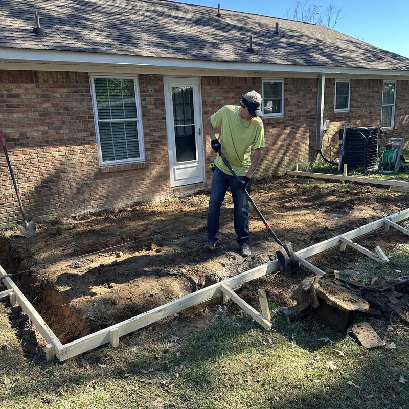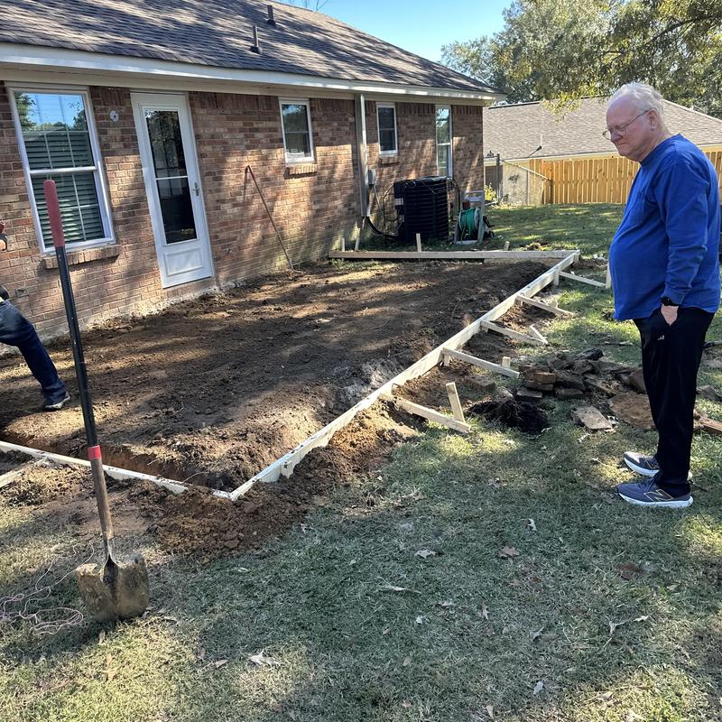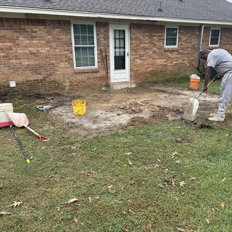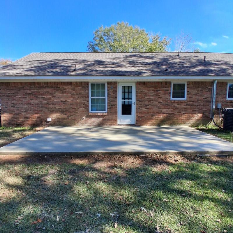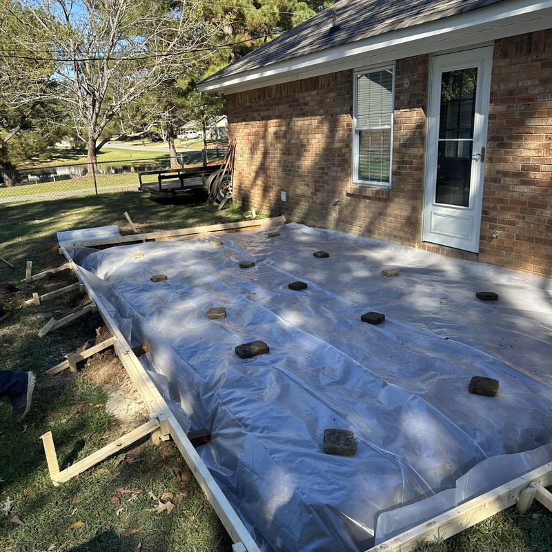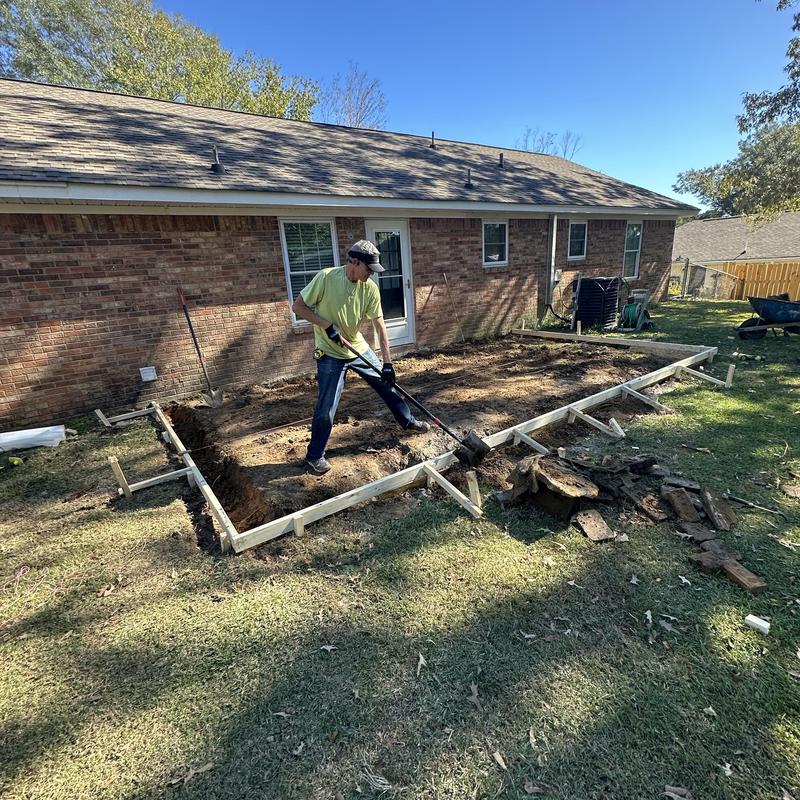 Contractors formed a concrete pad for a back patio in Pearl, Mississippi. This work involved preparing the area and setting forms to shape and support the concrete during pouring and curing. The project added a durable surface fit for outdoor use.