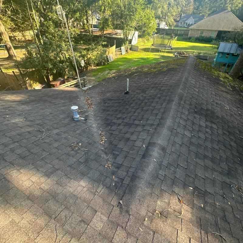 A roofing contractor in Clinton, Mississippi completed a detailed roof inspection to assess the condition of shingles, flashing, ridges, vents, and decking. The team documented storm damage, leaks, lifted shingles, and nail pops. Photographs and condition notes were gathered to support repair estimates, insurance claims, or future maintenance planning.