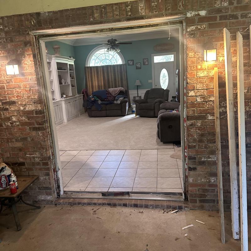 BORN AGAIN HOME REMODELING AND ROOFING LLC removed carpet and tile in Jackson, Mississippi. The crew completed the demolition to prepare the area for new flooring installation or further remodeling work.