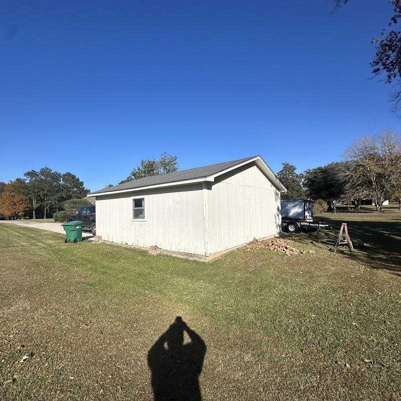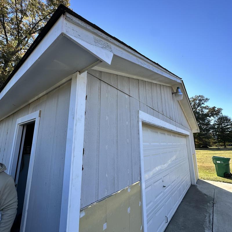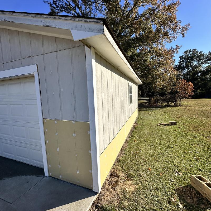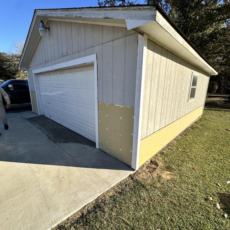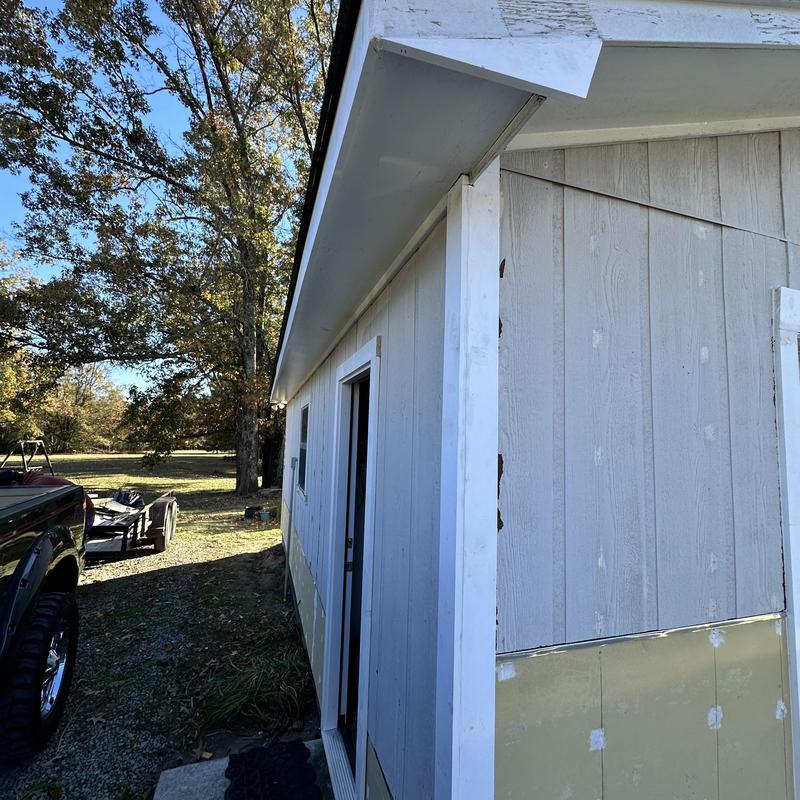 A crew in Clinton, Mississippi installed new siding, replaced rotting wood, and painted a shed. The work improved the structure's exterior condition and protected it from further damage.