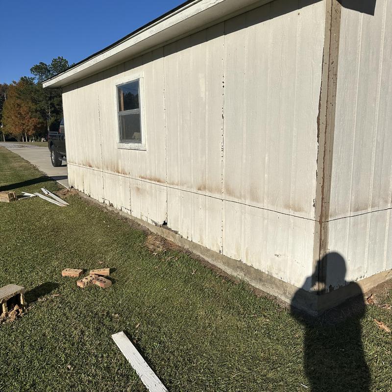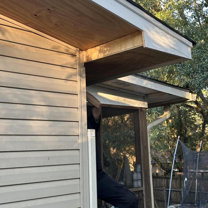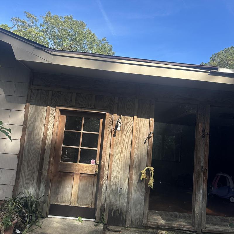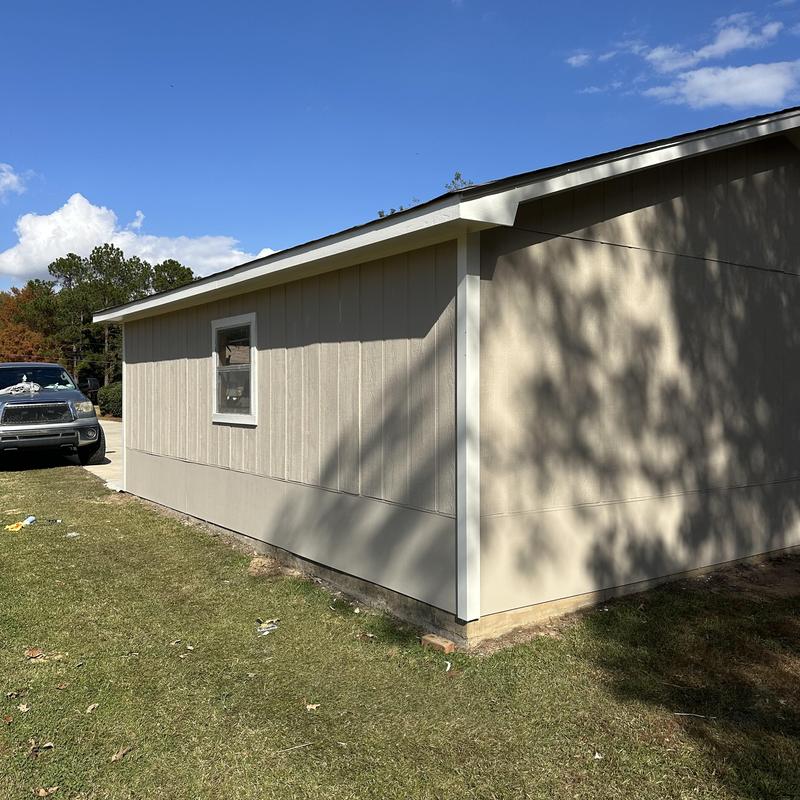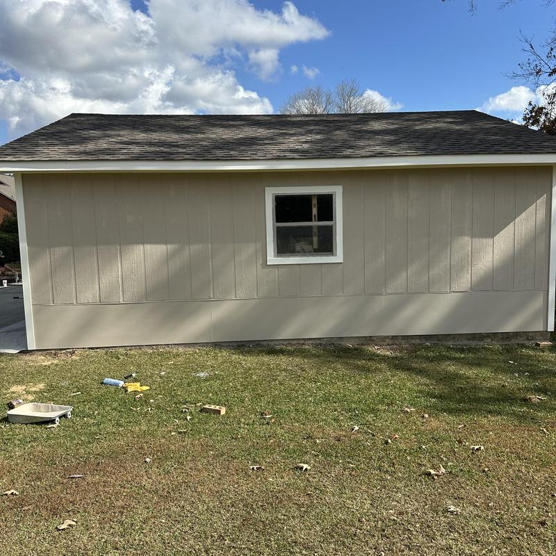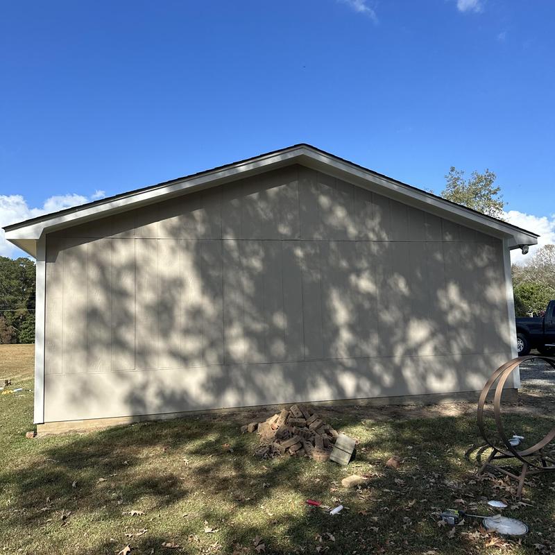 A crew in Clinton, Mississippi installed new siding, replaced rotting wood, and painted a shed. The work improved the structure's exterior condition and protected it from further damage.