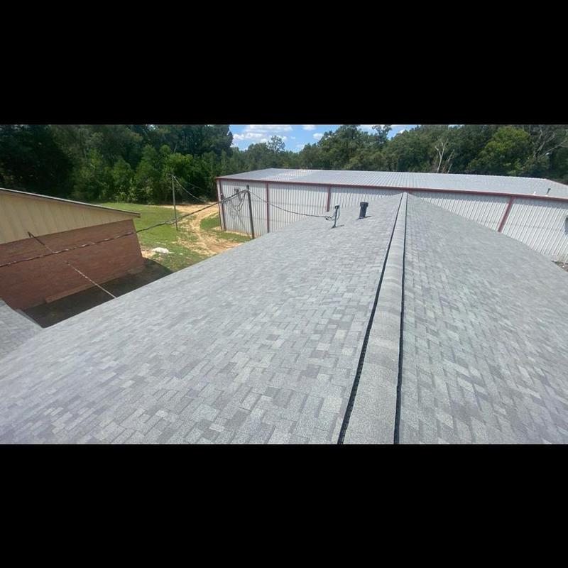 Born Again Home Remodeling and Roofing LLC replaced roofing systems in Clinton, Mississippi. The team removed all existing shingles, installed new decking, applied a synthetic underlayment, added ice and water shielding, and fitted GAF HD Z shingles with a drip edge to all buildings.