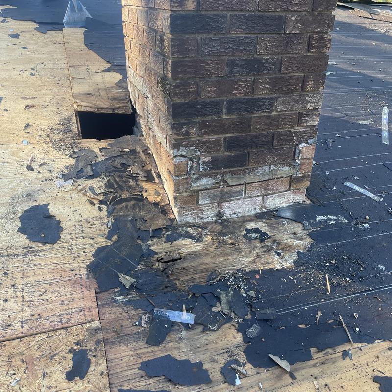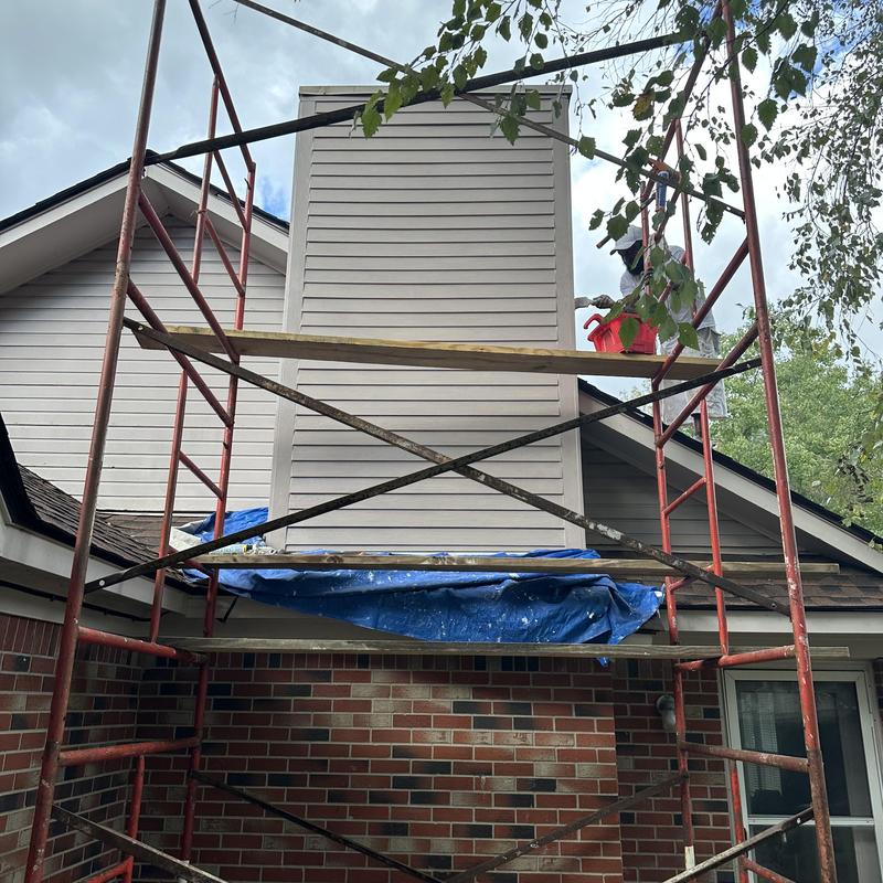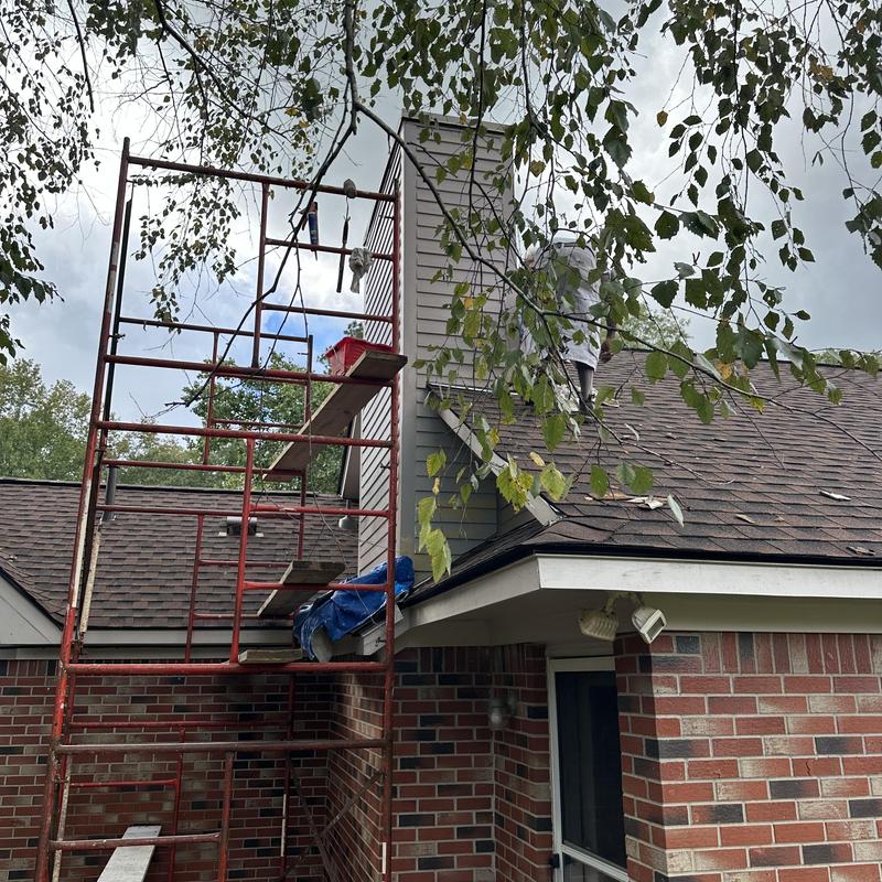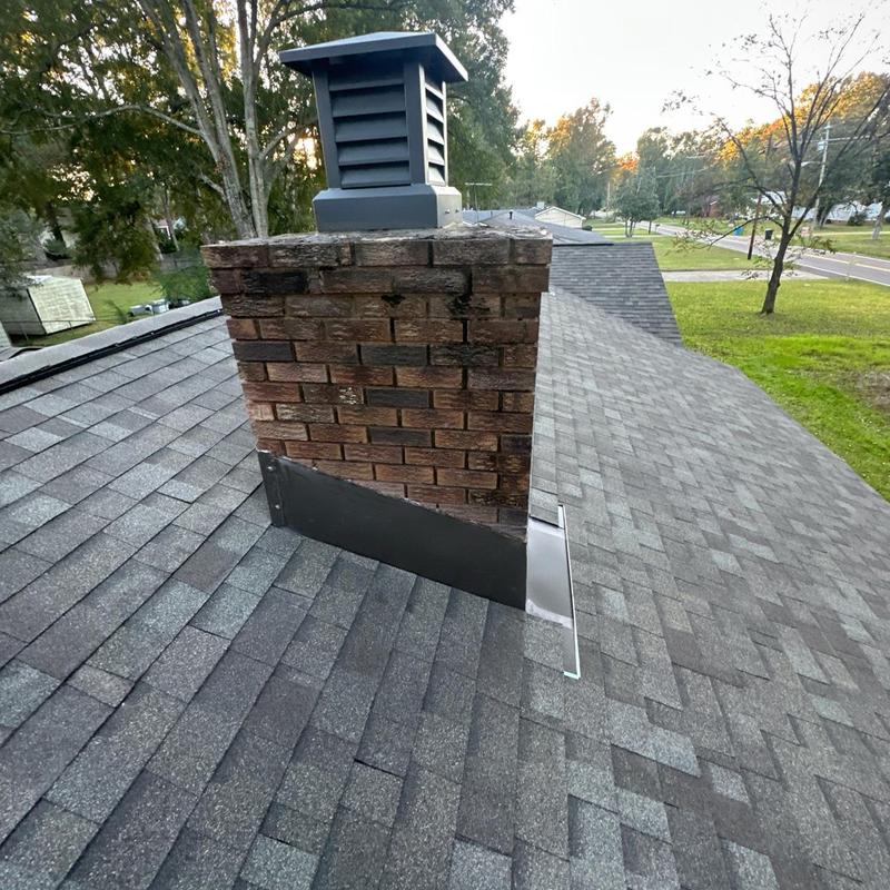 A roofing contractor in Pearl, Mississippi, replaced damaged chimney flashing and siding. The team installed new siding, painted it to match the home, and addressed the lack of shingles on the existing roof. This service helped restore the roof structure and maintain consistent exterior finish.