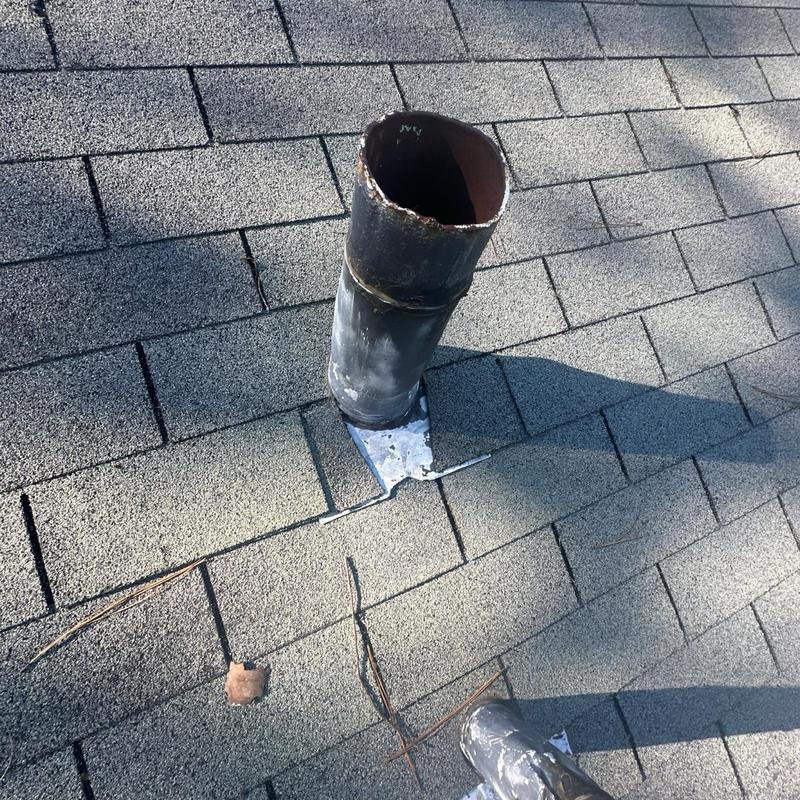 BORN AGAIN HOME REMODELING AND ROOFING LLC installed a 15-foot transition metal between a rear roof slope and a patio cover. The team also replaced and sealed four pipe boots. Location data was not provided for this project.