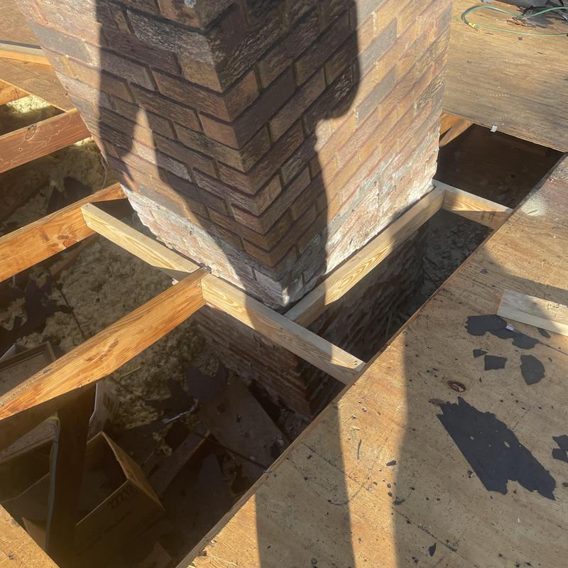 BORN AGAIN HOME REMODELING AND ROOFING LLC removed old chimney flashing and installed new flashing along with a new wood-framed cricket in Jackson, Mississippi. This service helps improve roof drainage and protects the structure from water intrusion around the chimney area.