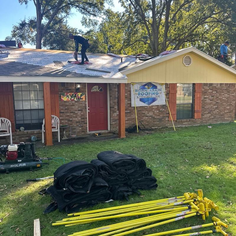 BORN AGAIN HOME REMODELING AND ROOFING LLC completed a full roof replacement in Jackson, Mississippi. The team removed old shingles and underlayment, repaired damaged decking, and installed synthetic underlayment, flashing, drip edge, and ventilation. Premium shingles were applied to improve durability and weather resistance.