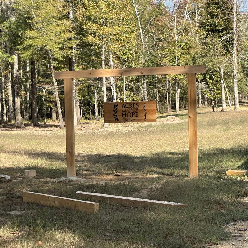 BORN AGAIN HOME REMODELING AND ROOFING LLC installed a property sign at Acres of Hope in Terry, Mississippi. This service involved placing clear site signage to support property visibility and identification.
