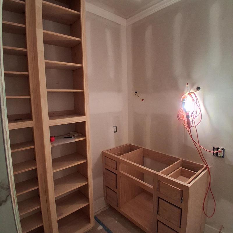 Born Again Home Remodeling and Roofing LLC built new construction cabinet boxes and installed doors in Carthage, Mississippi. The work focused on creating and assembling cabinetry structures during the early construction phase of a residential or commercial project.