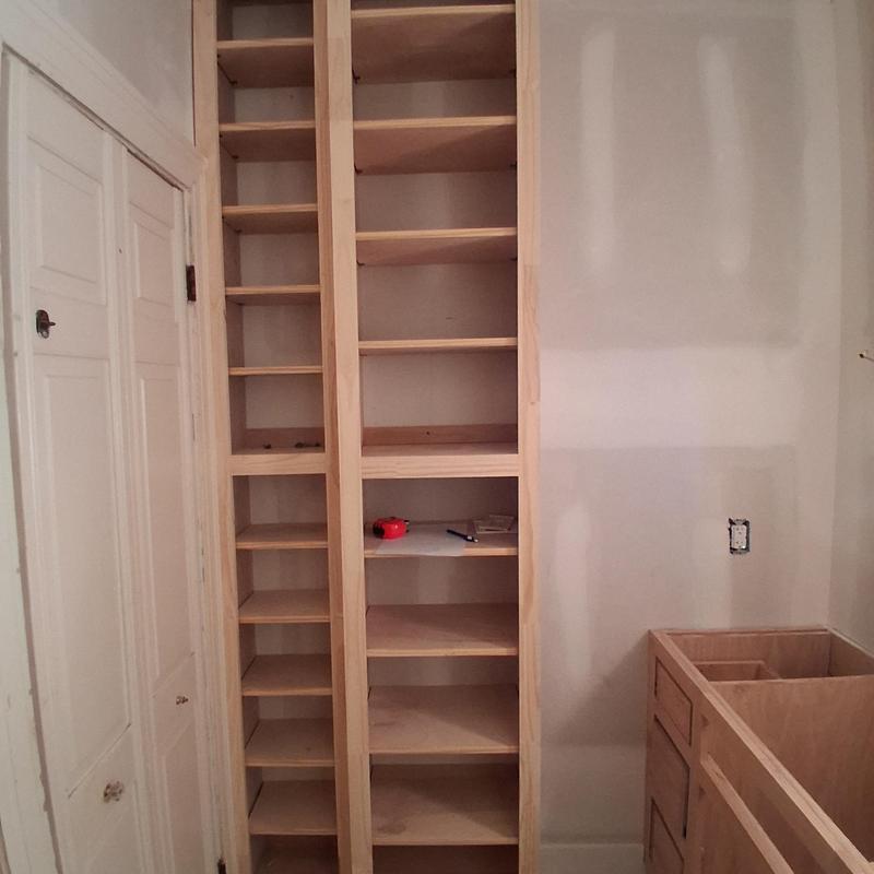BORN AGAIN HOME REMODELING AND ROOFING LLC built custom cabinets for a home office and a pantry in Carthage, Mississippi. The project focused on increasing storage and improving organization through precise cabinet construction tailored to each space's function.