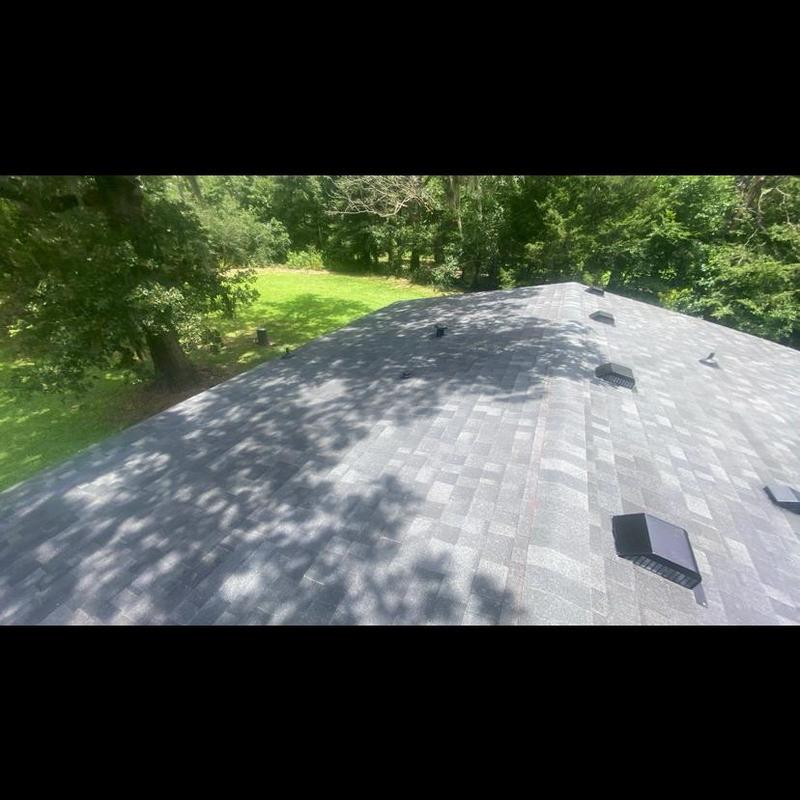 Born Again Home Remodeling and Roofing LLC replaced a full roof system in Pearl, Mississippi. The crew installed synthetic felt, inspected and repaired the substructure, added new flashing, and installed GAF HDZ shingles with a Cobra Ridge Vent. They removed debris, used a magnetic sweep on the yard, and protected the area during work.