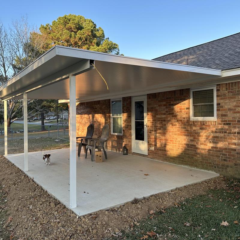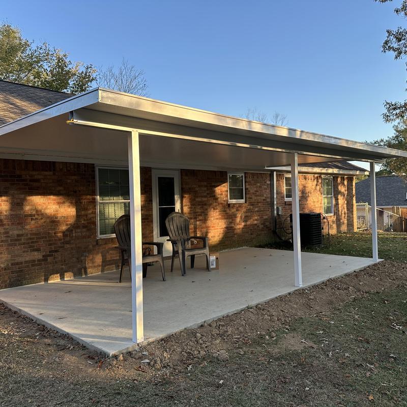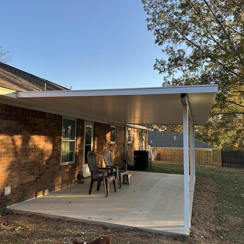Contractors in Jackson, Mississippi removed damaged concrete, poured a new concrete slab, installed an insulated patio cover, and completed wiring for outdoor lighting. This project updated the outdoor space and improved its functionality with durable materials and electrical access.